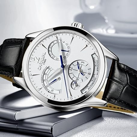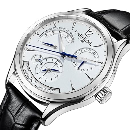 Sản phẩm Carnival Men's Automatic Dual Time 24 Hour Power Reserve Calendar Waterproof Watch, white, Watch đang được bán với giá ưu đãi là $92.6718 tại nước Nhật.