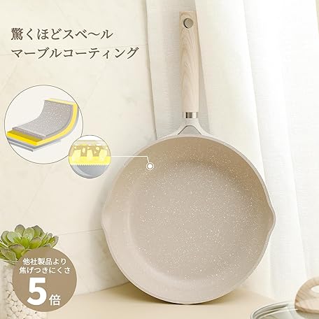 Thông tin sản phẩm CAROTE PFOA PFOS Free Marble Coat, Smooth and Slip, Easy to Wash, Fried Eggs, Omelet, Compatible with All Heat Sources, Greige Cosy Series