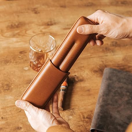 Thông tin sản phẩm CASE ELEGANCE Cigar Case, Cigar Case, Travel Case - Vegan Leather for Cigars, Holds 2 (Chestnut Brown), chestnut brown