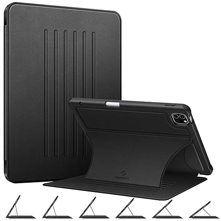 CaseBot Magnetic Stand Case for iPad Pro 11 Inch (4th/3rd Generation) 2022/2021 - Multiple Angles Shockproof Soft TPU Cover with Pencil Holder for iPad Pro 11" 2nd and 1st Generation, Black