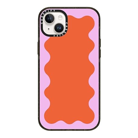 CASETiFY Impact Case for iPhone 14 Plus [Slim / 8.2m Military Grade 4X Drop Protection / Wireless Charging] - Orange with Pink Wave Border - Clear Black