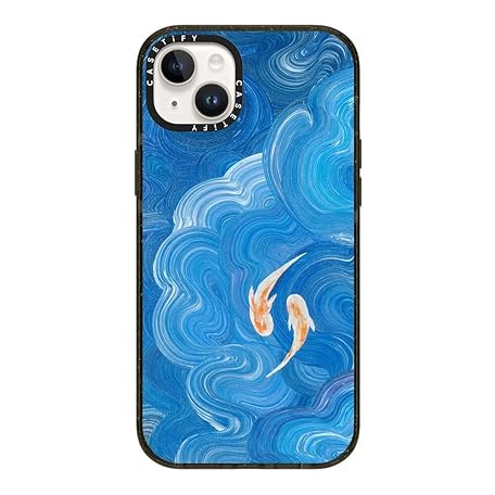 CASETiFY (ケースティファイ) インパクトケース iPhone 14 Plus用 [Slim / 8.2 m 軍用グレードの4倍の落下に対する保護/ワイヤレス充電対応] - Two Little Koi - クリアブラック
