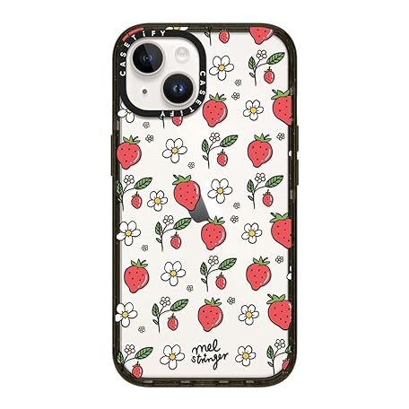 CASETiFY (ケースティファイ) インパクトケース iPhone 14用 [Slim / 2.5 m 軍用グレードの4倍の落下に対する保護/ワイヤレス充電対応] - ストロベリーサマー - クリアブラック