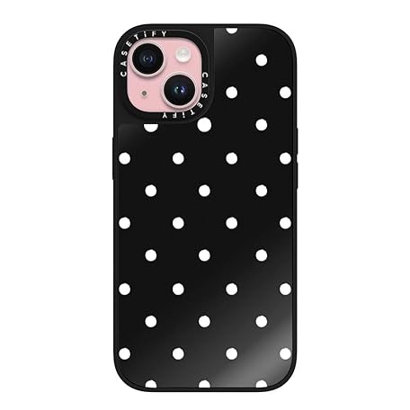• CASETiFY (ケースティファイ) ミラー iPhone 15用 ケース [反射 / 5フィートの落下に耐える保護力/Magsafe対応] - クラシックドッティ - ブラックオンブラック