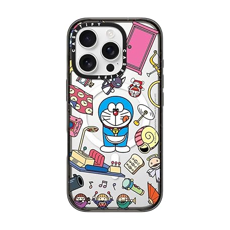 CASETiFY MagSafe Compatible Impact iPhone 16 Pro Case [MIL Standard Compliant (4x MIL-STD-810G) / Clear Drop Test from 2.5m / Doraemon Co-Lab] - Clear Black - Doraemon Secret Gadgets Case
