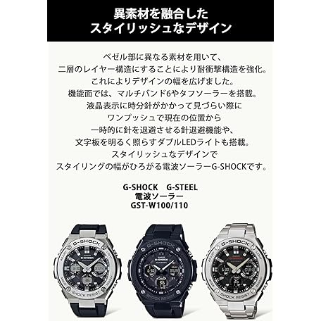 Thương hiệu G-SHOCK(ジーショック) là cái tên nổi tiếng được rất nhiều khách hàng trên thế giới chọn lựa. Với kiểu dáng đẹp mắt, sang trọng, sản phẩm Casio G - Shock GST - W110D - 1A9JF G - Steel 6 Band Solar Powered Men's Watch là sự lựa chọn hoàn hảo nếu bạn đang tìm mua một món cho riêng mình.