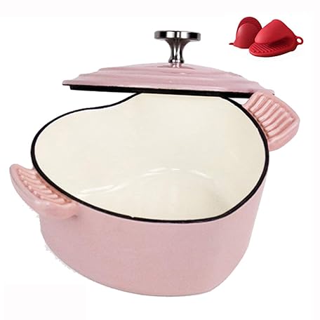 Casserole Dish with Lid Enameled Cast Iron Heart Dutch Oven, Nonstick Enamel Cookware Clock Pot