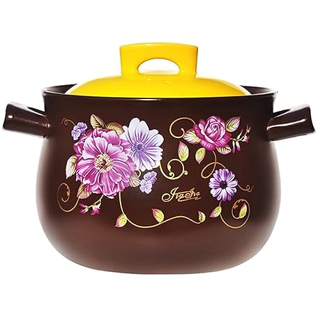 Casserole Plate with Lid Soup Casserole Dish Pots Rice Casserole Ceramic Clock Soup Porridge Pot (Brown, 3.8)