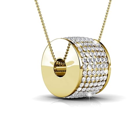 • Cate & Chloe Anabelle 18k ホワイトゴールドメッキ パヴェネックレス クリスタル付き ユニークなトワイライトスパークルサークルペンダント ダイヤモンドクラスター ファッション 結婚記念日 ステートメントジュエリー, 真鍮, スワロフスキー