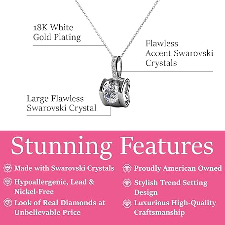 • Cate & Chloe Billie Inspiredソリティアペンダントネックレス、レディース18 Kホワイトゴールドメッキネックレス輝くラウンドカットのスワロフスキークリスタルストーン、シルバーペンダントネックレスの女性、メーカー希望小売価格 – 119ドル