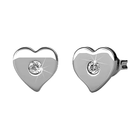 Cate & Chloe Vanessa小柄Sacred Heart Shape 18 Kホワイトゴールドスワロフスキーシルバースタッドイヤリング、美しい小さなハート型イヤリングセット、小型ソリティアラウンドカットイヤリングレディース – MSRP $ 121