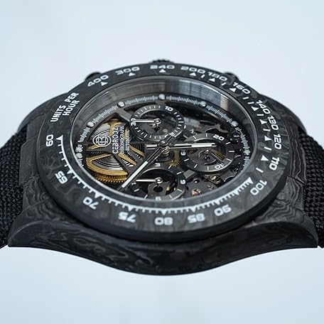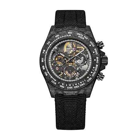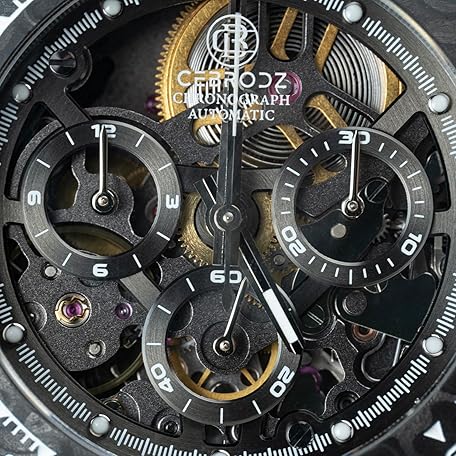• CEBRODZ クロノグラフ 腕時計 自動巻き 炭素繊維ケース 2つのベゼル ピーコック ムーブメント 交換可能なベゼル DIY 機械式 スケルトン 夜光 防水 高級 紳士用