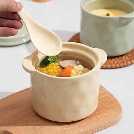 Thông tin sản phẩm Ceramic Steamer Pot, Ceramic Soup Bowl, Stew Pot with Lid and Handle, Ceramic Stew Pot Clock Pot Soup Bowl Egg Steamer with Lid, Microwave, Dishwasher, Oven Safe Bowl for Home and Hotel Use (Beige)