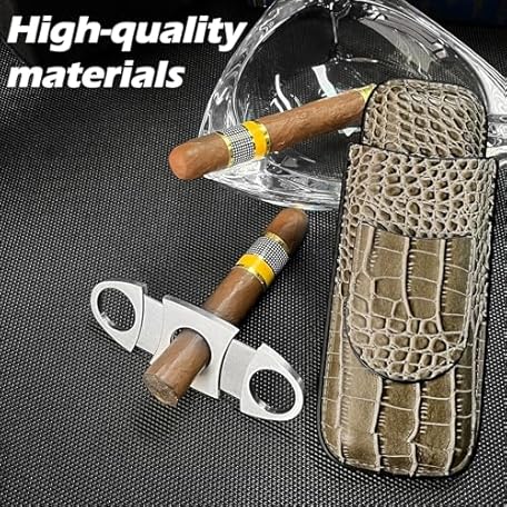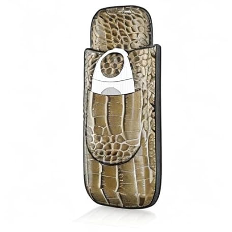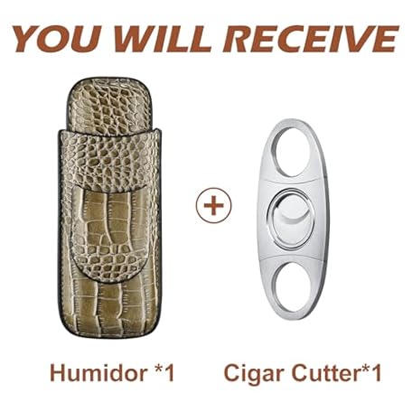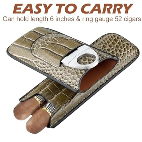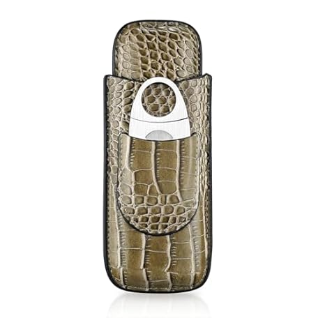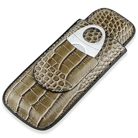 • cgaplus 2本指シガーケース カッター付き クロコダイルパターン レザー 葉巻ヒュミドールケース ポータブル 旅行用 シガーケース 男性用 トープ