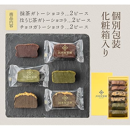 Sản phẩm 川本屋茶舗 CHAGASHIショコラ チョコ お茶屋が作った 濃厚 ガトーショコラ ほうじ茶ガトーショコラ ギフトケーキ チョコレート 保存料・着色料不使用 (6個(抹茶・ほうじ茶・チョコ) đang được bán với giá ưu đãi là $24.8302 tại nước Nhật.