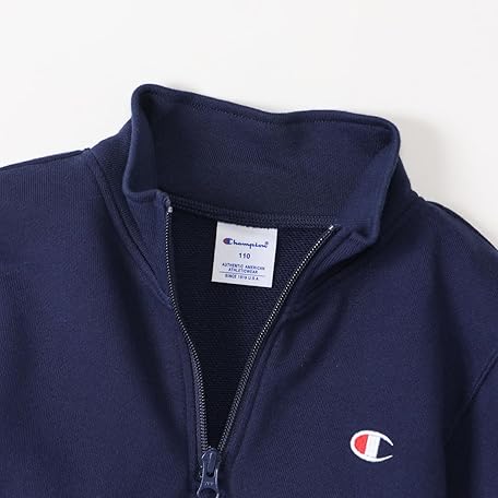 Champion CKSY009Z Kids Sweatshirt, Long Sleeve, 100% Cotton, Fleece Lining, One-Point Logo, Embroidery, Half Zip Sweatshirt, Kids Basic