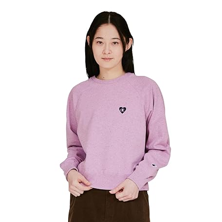 Champion CW-C002 Women's Sweatshirt Long Sleeve Round Neck Fleece Lined Relax Fit Big Logo Long Sleeve Raglan Sweatshirt, P Purplish Pink, L
