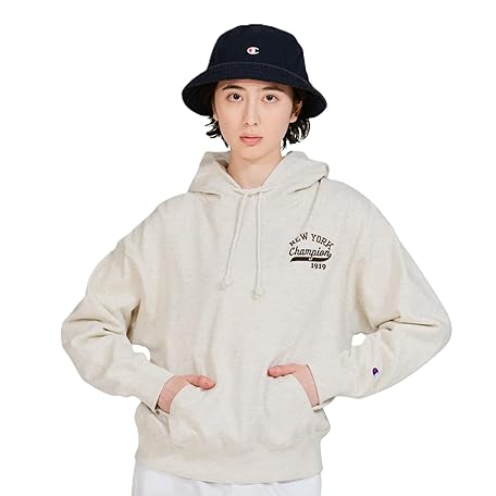 Champion CW-C105 Sweatshirt, Loungewear, Top, Long Sleeve, Round Neck, Relaxed Fit, Graphic Logo, Hooded Sweatshirt, Women's Basic, oatmeal, M