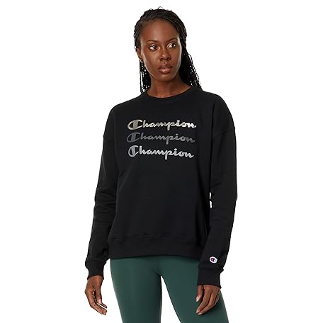 • Champion パワーブレンド リラックスクルー ブラック MD, ブラック, Medium