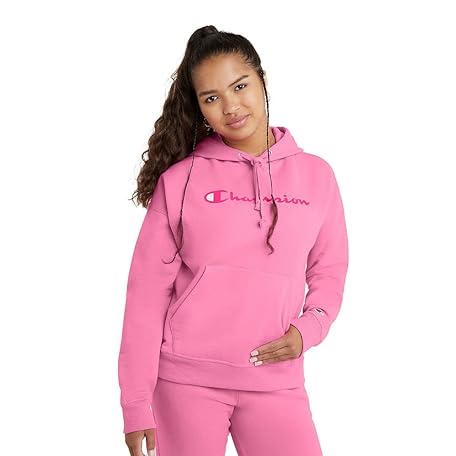 Champion レディース パーカー パワーブレンド フリース パーカー 快適 スウェットシャツ レディース (プラスサイズあり), ピンクリボンスクリプト, Small