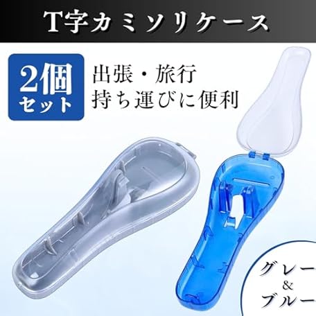 CHASO Razor Case, T-Shaped Razor Holder, Plastic Case, Razor, Travel, Business Trip, Portable, Razor Case, Shaving Holder, Set of 2 (1 gray + 1 blue)
