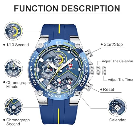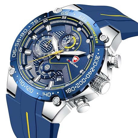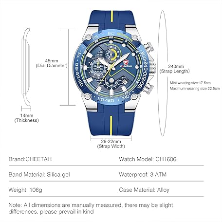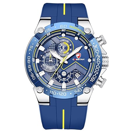 CHEETAH Men's Chronograph Watch Outdoor Waterproof Military Tactical Style Quartz Sport Watch for Men with Rubber Strap, Silver Blue, Chronograph, Quartz Movement