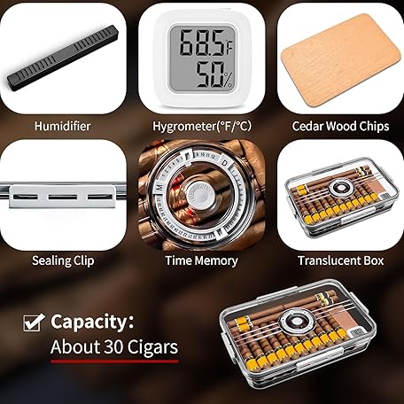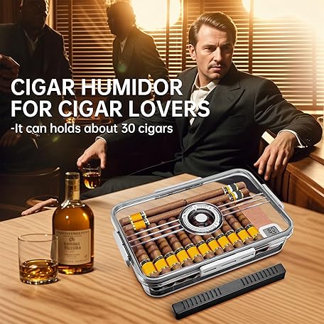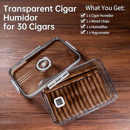 Thông tin sản phẩm Cigar Humidor, Humidifier, Hygrometer Storage for 30 Cigars Clear Acrylic Humidor