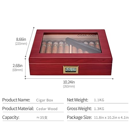 Thương hiệu CIGARLOONG là cái tên nổi tiếng được rất nhiều khách hàng trên thế giới chọn lựa. Với kiểu dáng đẹp mắt, sang trọng, sản phẩm CIGARLOONG シガー ヒュミドール デジタル湿度計と加湿器付き シダーウッド ガラストップ 取り外し可能な仕切り付き収納シガーボックス 15-25本の葉巻用 (ブラック)  là sự lựa chọn hoàn hảo nếu bạn đang tìm mua một món  cho riêng mình.