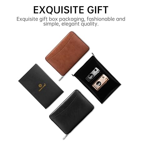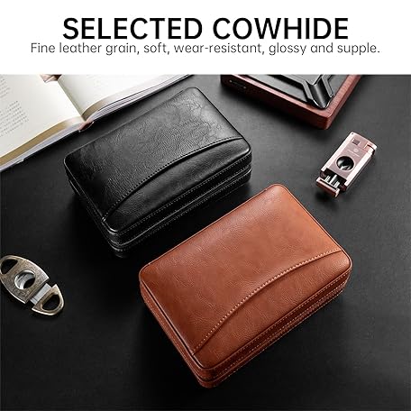 CIGARLOONG Leather Cigar Case Portable Cigar Humidor with Cedar Interior and Humidifier - Holds 6 Cigars - Perfect for Cigar Enthusiasts (Black)