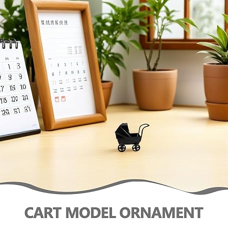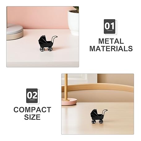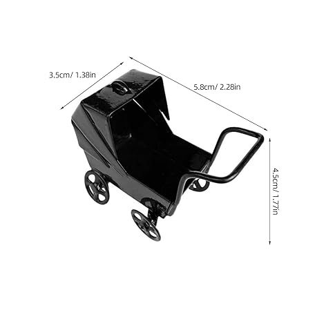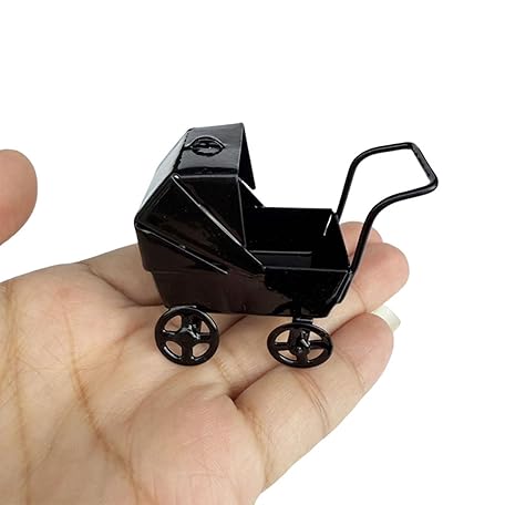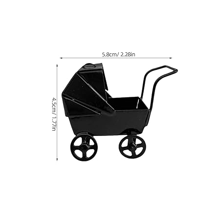 CIMAXIC ミニチュアドールハウス家具:ベビードール用乳母車 - 子供用リアルなベビーカーおもちゃ - デスクトップオーナメント - ごっこ遊び用ベビーカー - ドールハウスアクセサリー ブラック