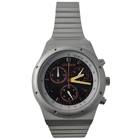 CITIZEN (シチズン)クロノグラフ ブラックダイアル ソーラー 1984 復刻 200本限定 マットシルバー メタルベルト メンズウォッチ 腕時計 AT2557-54G