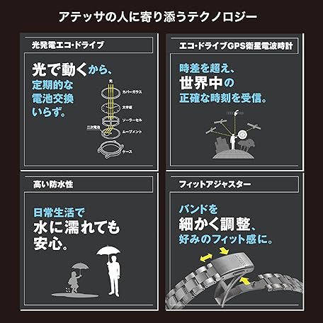 Thương hiệu ATTESA(アテッサ) là cái tên nổi tiếng được rất nhiều khách hàng trên thế giới chọn lựa. Với kiểu dáng đẹp mắt, sang trọng, sản phẩm CITIZEN ATTESA CC4076-65A Men's Wristwatch là sự lựa chọn hoàn hảo nếu bạn đang tìm mua một món cho riêng mình.