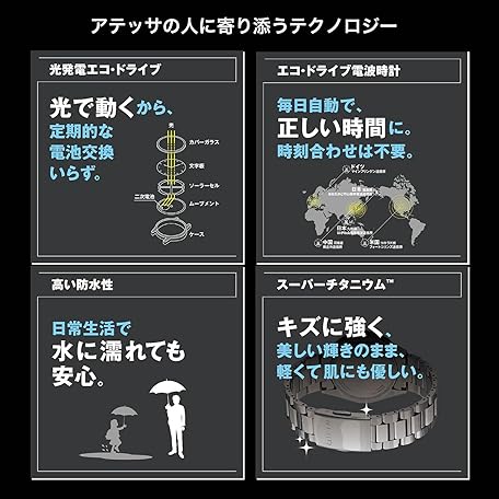 Thương hiệu ATTESA(アテッサ) là cái tên nổi tiếng được rất nhiều khách hàng trên thế giới chọn lựa. Với kiểu dáng đẹp mắt, sang trọng, sản phẩm Citizen Attesa Eco-Drive CB1120-50L Watch, Radio Controlled,World Time, Direct Flight Men's, Silver là sự lựa chọn hoàn hảo nếu bạn đang tìm mua một món cho riêng mình.