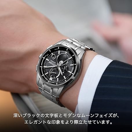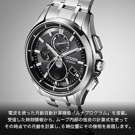 Thông tin sản phẩm Citizen BY1001-66E Atessa Moon Phase Wristwatch, Solar Radio, Waterproof, Men's Silver, Black, Business
