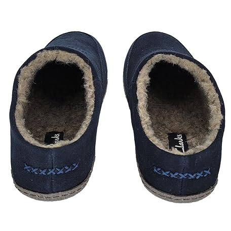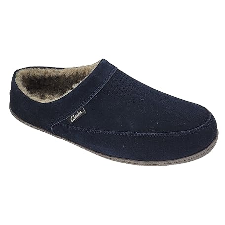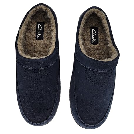 Clarks (クラークス) メンズスリッパ 穴あきスエードレザーアッパー JMS0721 - 暖かいプラッシュシェルパ裏地 - 屋内外ハウススリッパ 男性用