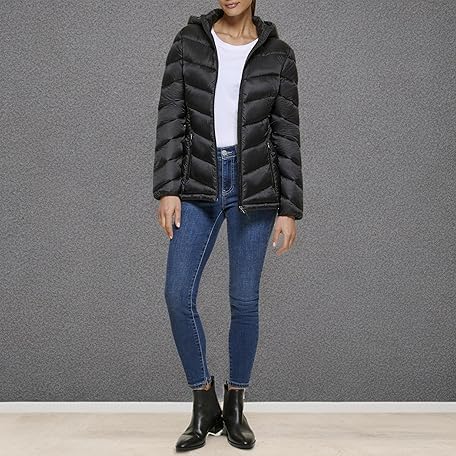 • [カルバン クライン] ダウンコート Classic Hooded Zip Front Puffer Coat レディース ピンク