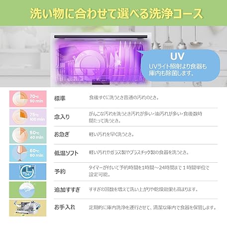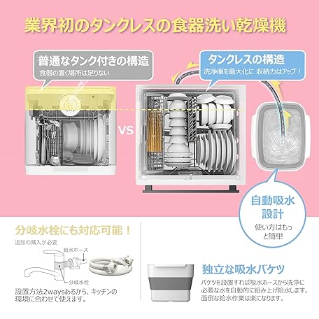 Thông tin sản phẩm COMFEE' 食洗機 工事不要 5人用 大容量 UV除菌 自動給水 静音 液晶表示 タイマー搭載 節電 折り畳み給水バケツ付き 食器洗い乾燥機 食器洗浄機 分岐水栓対応 2ways 節水 タンクレス式 食洗器 フリースタンディング WQP6-3602K W/T