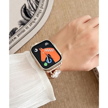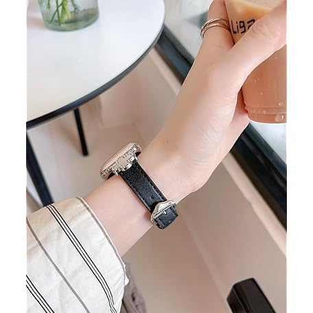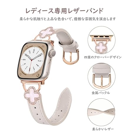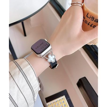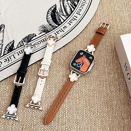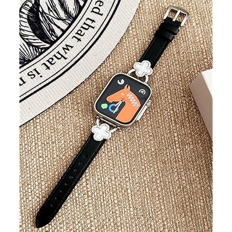 Compatible Apple Watch Band Genuine Leather Women Apple Watch Ultra2/Ultra/Series 9/8/7/6/5/4/3/2/1/SE Leather Replacement Strap Four Leaf Clover Bling Cute Apple Watch Band for Women iWatch 38mm 40mm