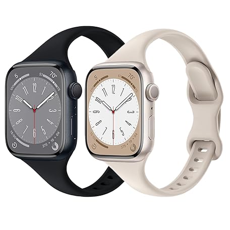 Compatible Apple Watch Band Women Slim Silicone Sport Band 49mm 45mm 44mm 42mm 41mm 40mm 38mm Apple Watch Band Replacement Strap for iwatch Ultra 2/Ultra/Series 9/8/7/SE/6/5/4/3/2/1 Breathable Soft