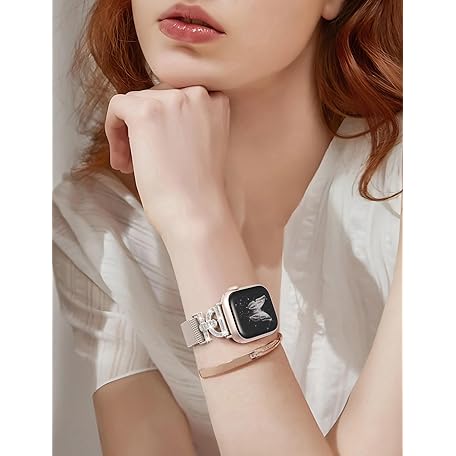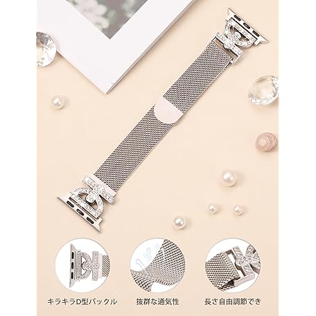Compatible Apple Watch Silicone Band / Apple Watch Band, Bling D Buckle, Stainless Steel Magnetic Magnetic Replacement Strap, Stylish, Cute, Metal Strap for Women Dedicated Metal Strap for