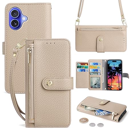 Compatible iPhone 17 Case, Notebook Type, Wallet Type, Card Storage, Mobile Cover, Compatible with iPhone 17, Smartphone Case, Shoulder Strap, PU Leather, Horizontal Stand Function, Coin