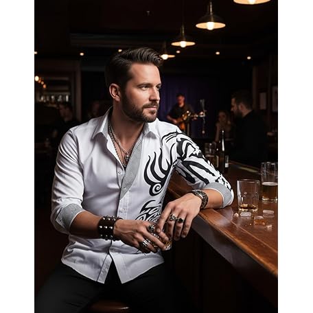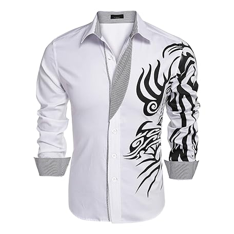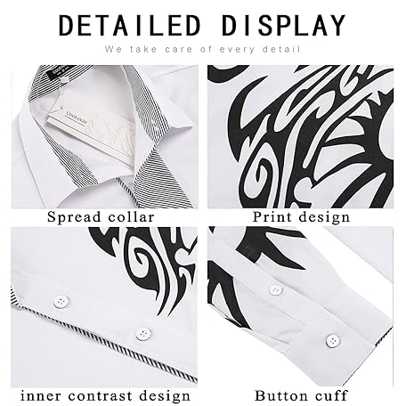 • COOFANDY Men's Printed Button Down Dress Shirt Fashion Long Sleeve Casual Shirts