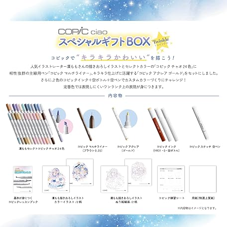 Sản phẩm COPIC Too Ciao Special Gift Box, Twinkle Aquarea, Postcard with Coloring Book đang được bán với giá ưu đãi là $68.5283 tại nước Nhật.