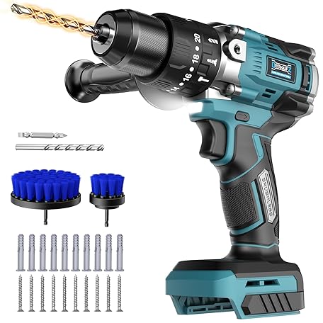 Cordless Power Drill for Makita 18V Battery: 3 Mode Electric Screwdriver/Drill Kit Tool, 1/2" Keyless Chuck Cordless Impact Drill Set, 20 Position, Variable Speed, For Home and Garden (No Battery)