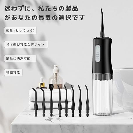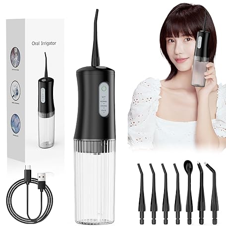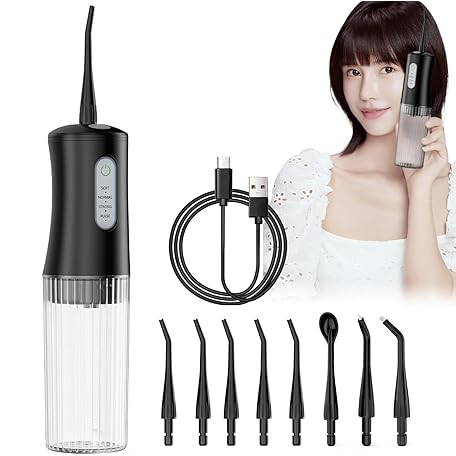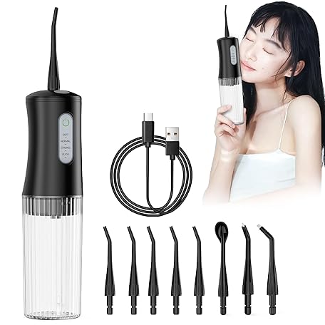 Cordless Water Flosser for Teeth Electric Oral Cleaner with 4 Cleaning Modes and 8 Jet Tips, IPX7 Waterproof Dental Cleaner, Portable Rechargeable Dental Cleaner for Home Travel, Black