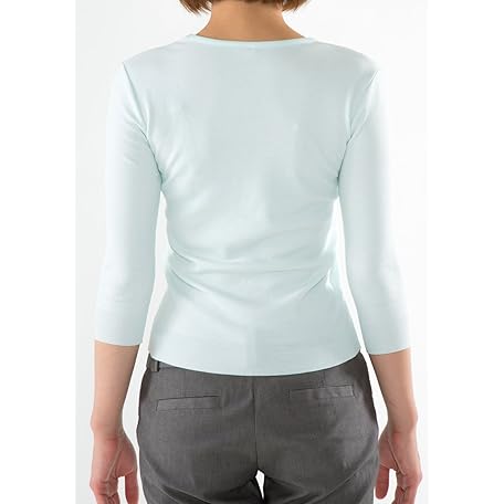 • CorLeonis V-neck cut and sew (3/4 sleeve) that is soft and comfortable to wear
