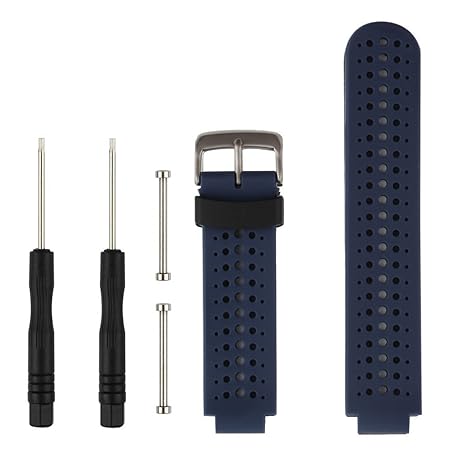 Correa de reloj de silicona suave para Garmin Forerunner 235 de Fit-power, repuesto ideal para Garmin Forerunner 235, 220, 230, 620, 630 y 735, Navy Blue & Black