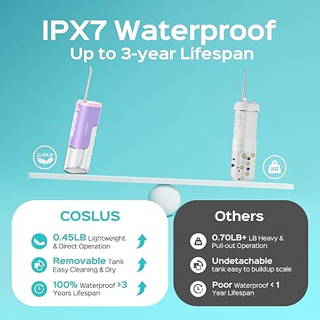 Sản phẩm COSLUS ミニウォーターフロッサー 旅行用:ポータブルコンパクトデザイン コードレス口腔洗浄器 ジェットチップ4個付き 取り外し可能なタンク IPX7防水 ブレース 敏感な歯 外出先での使用に ピンクパープル T40 đang được bán với giá ưu đãi là $43.3929 tại nước Nhật.