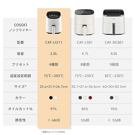 Thông tin sản phẩm COSORI CAF-LI211-WJP Non-Fryer, For One Person Air Fryer, Cuts 97% Oil, Energy Saving, Mini, Tabletop, Electric, Fryer, Special Recipe Included, PSE Certified, White