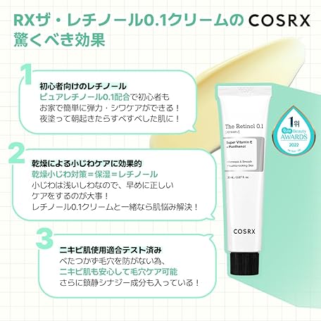 • COSRX Retinol 0.1 Cream, 0.7 fl oz (20 ml), Vitamin E, Allantoin, Hyaluronic Acid, Panthenol, Pure Genuine Retinol, Sensitive Skin, Tested for Human Body, Korean Skin Care, Korean Cosmetics